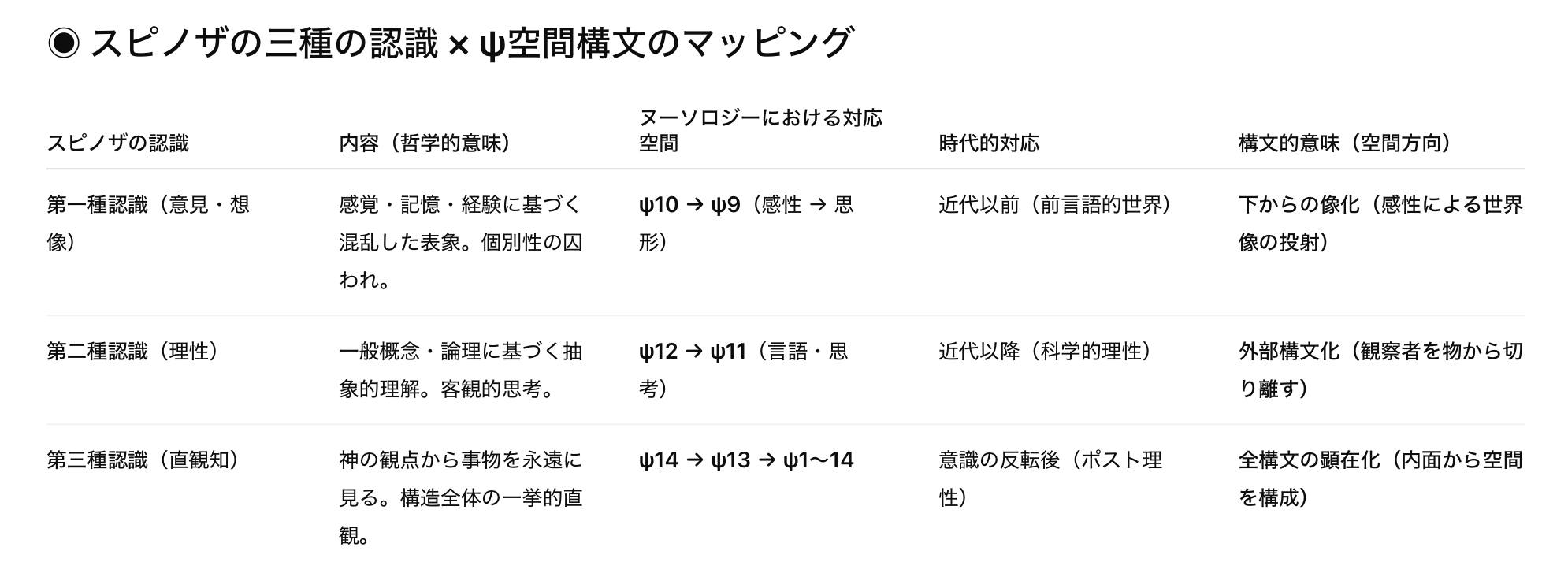 一方で、ヌーソロジーが目指しているのは、スピノザでいう”第三種認識(直観知)”の世界に当たる。